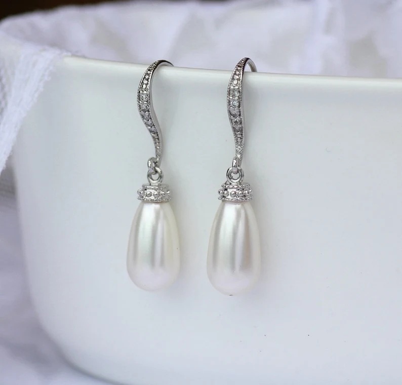 Elegant Drop-shaped Artificial Freshwater Pearl Shell Pearl Fully-inlaid Long Earrings