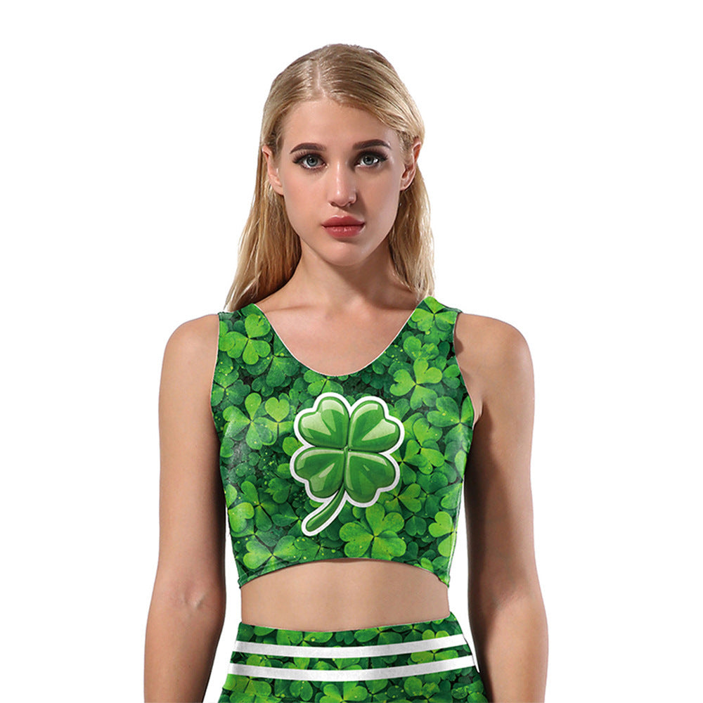 Saint Patrick's Day Digital Printing Festival Tank Top Bottom Yoga Suit Set For Women