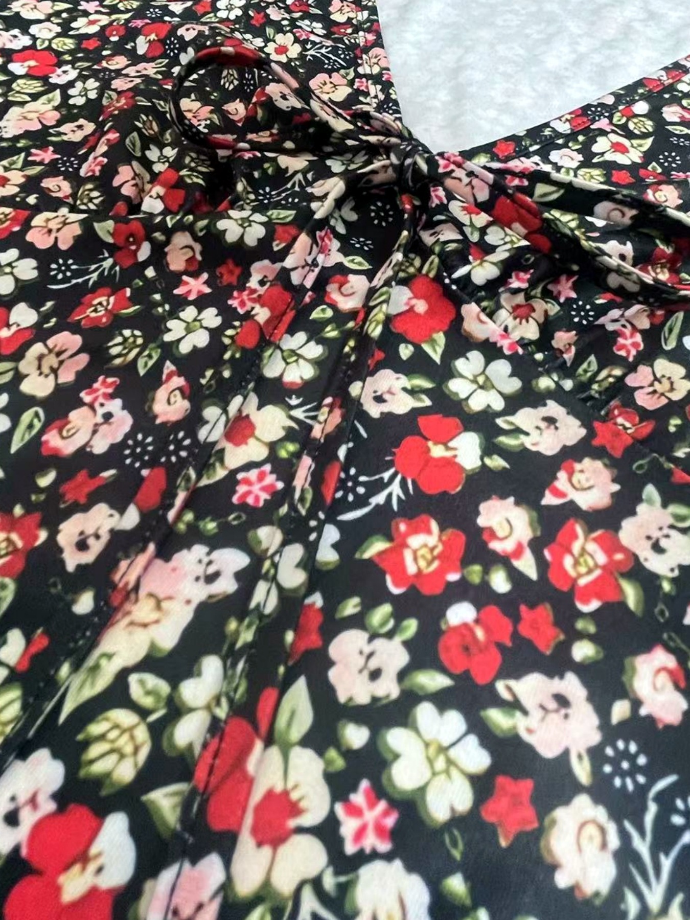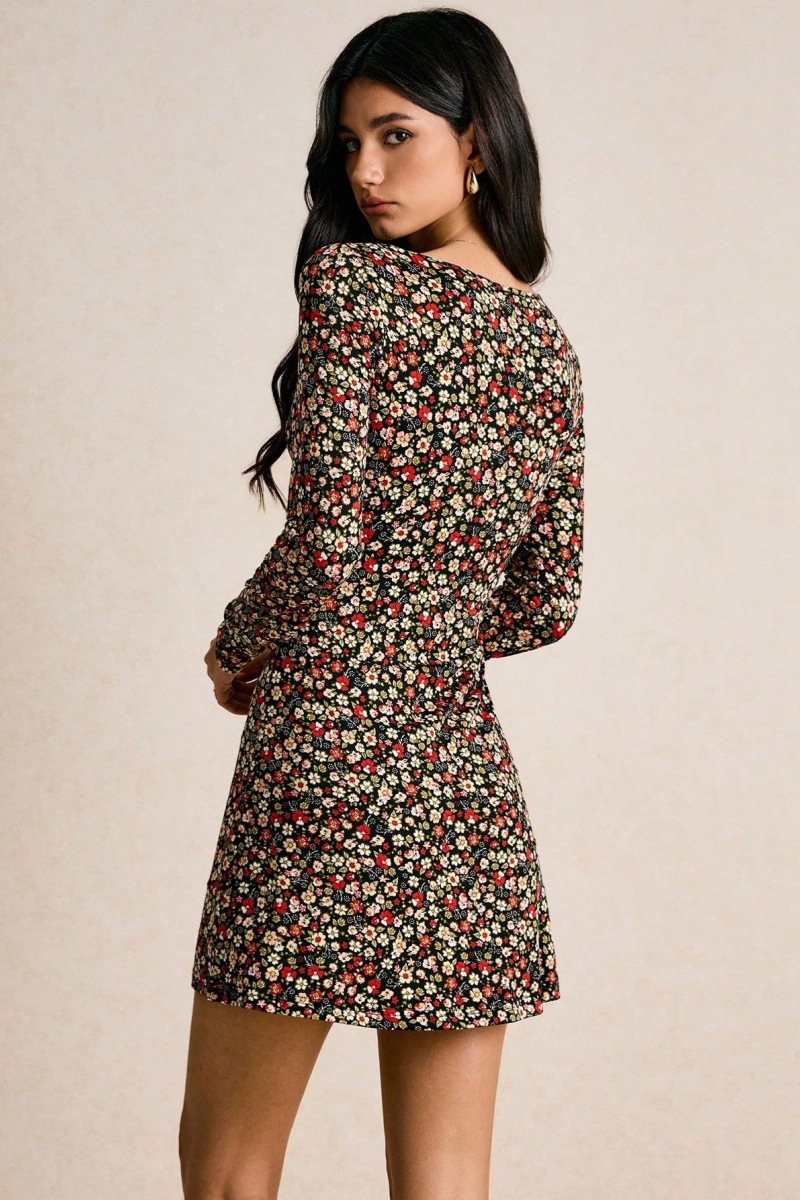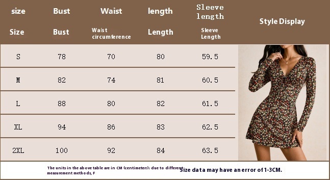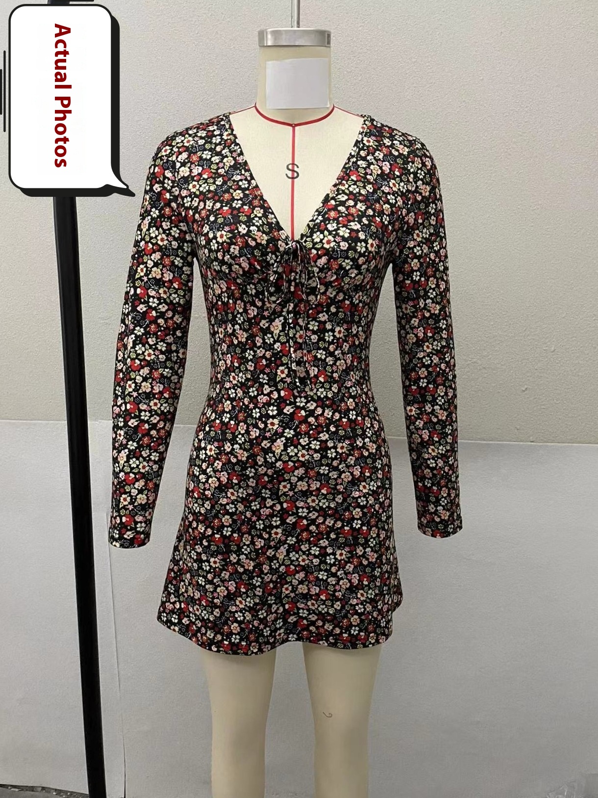 Slim Fit Fashion Floral V-neck Long-sleeve Dress
