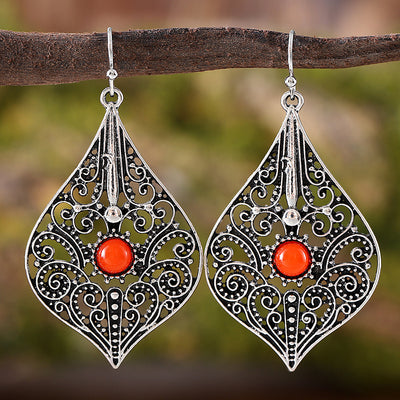 Retro Ethnic Style Hollow Pattern Ruby Earrings