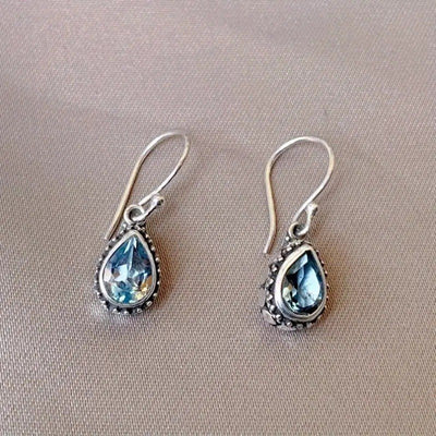 Retro Style Personalized Drop-shaped Blue Gem Inlaid Earrings